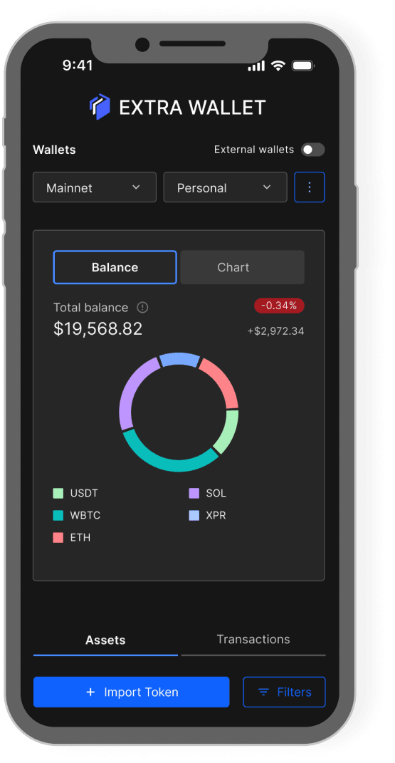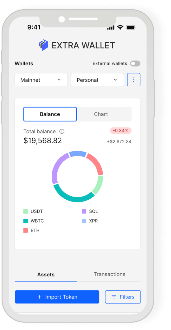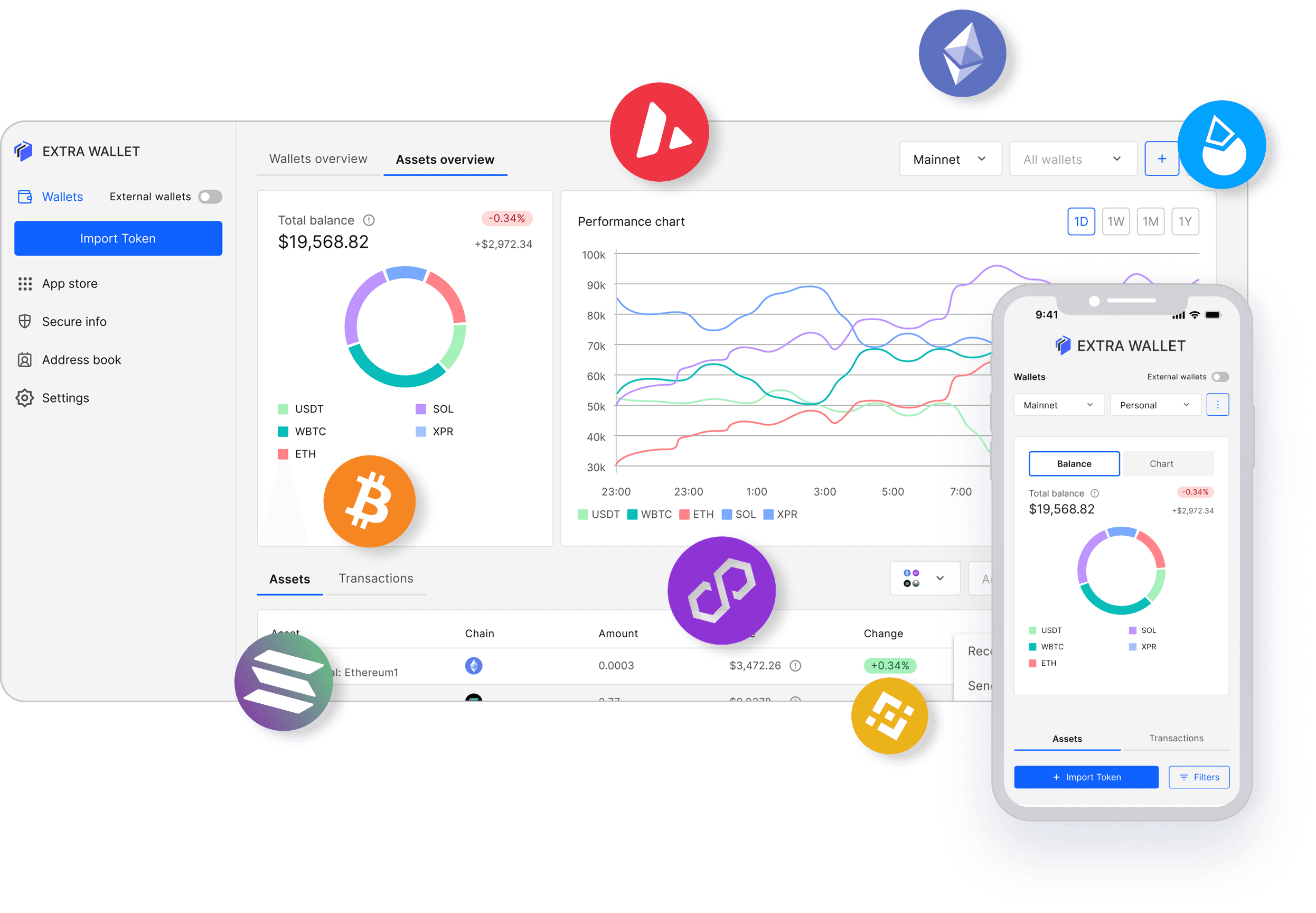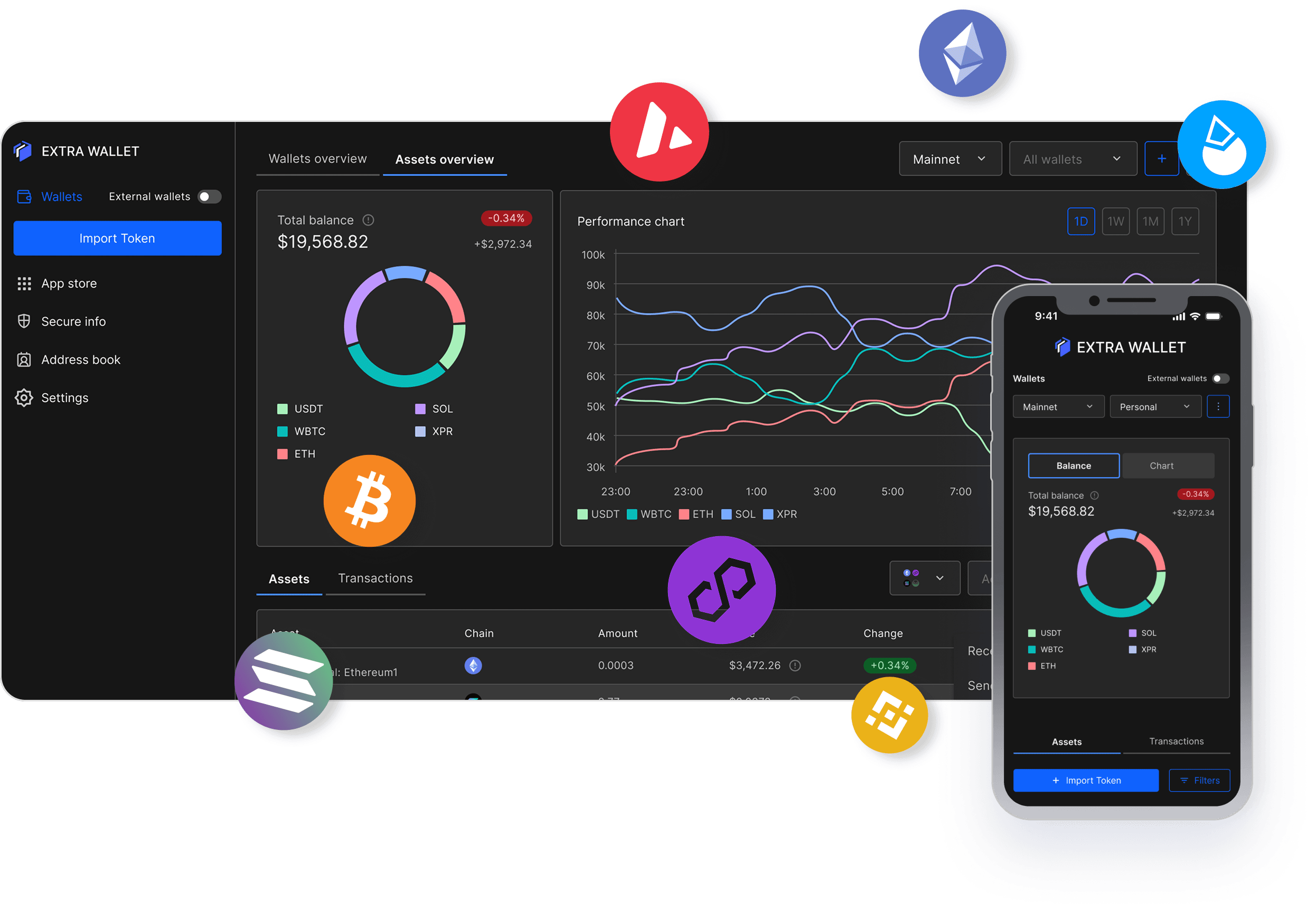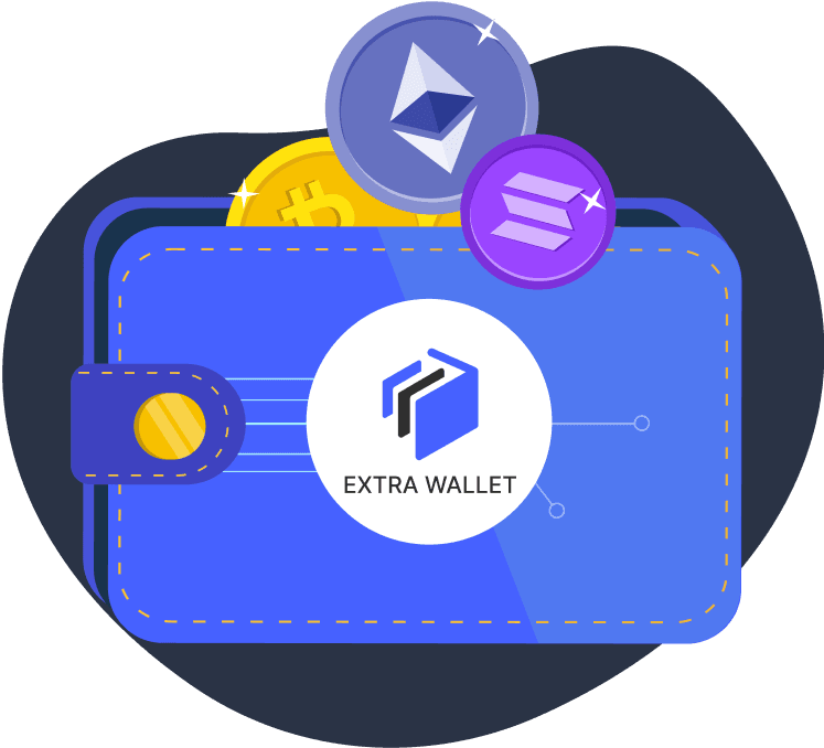 No need to use multiple wallets, one wallet to rule them all. EXTRA WALLET supports Ethereum, Solana, Bitcoin, Tron, and more chains.