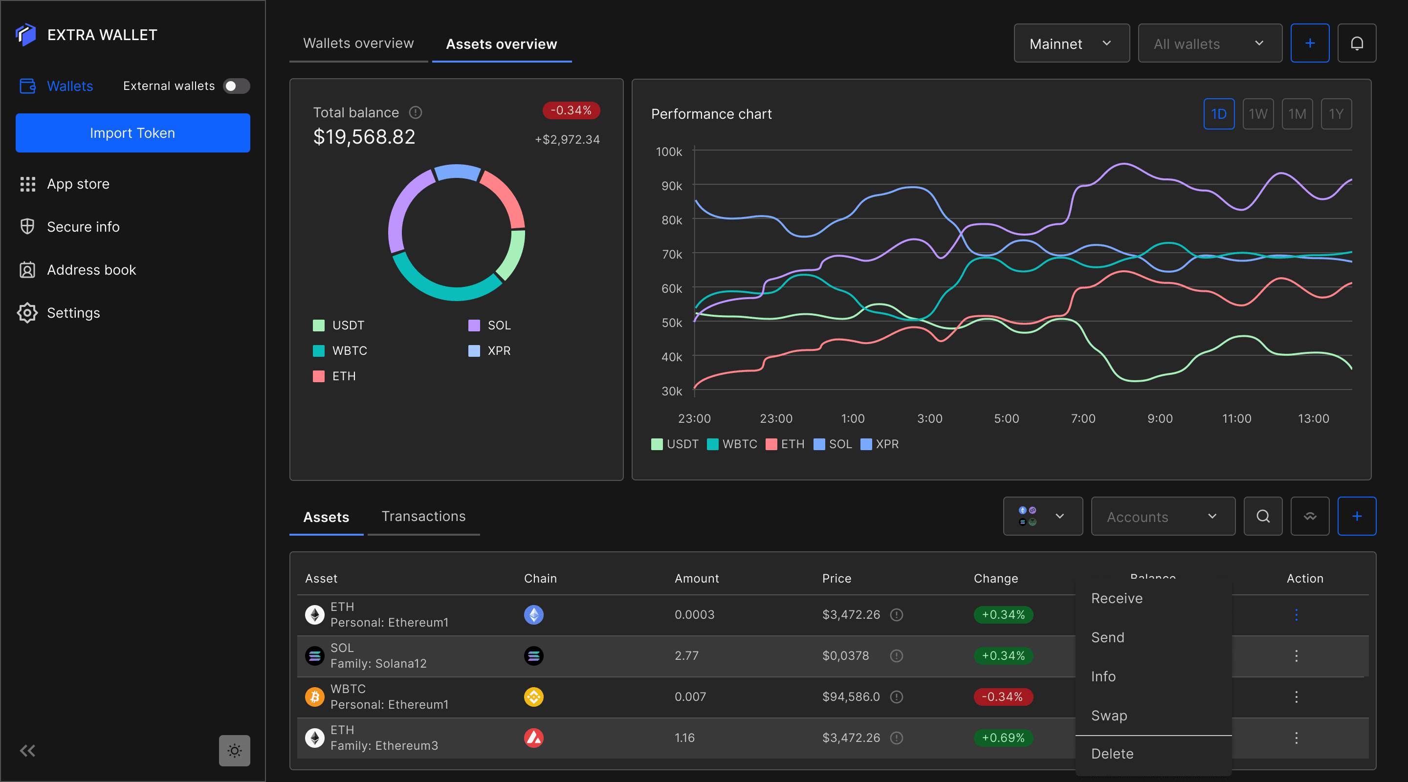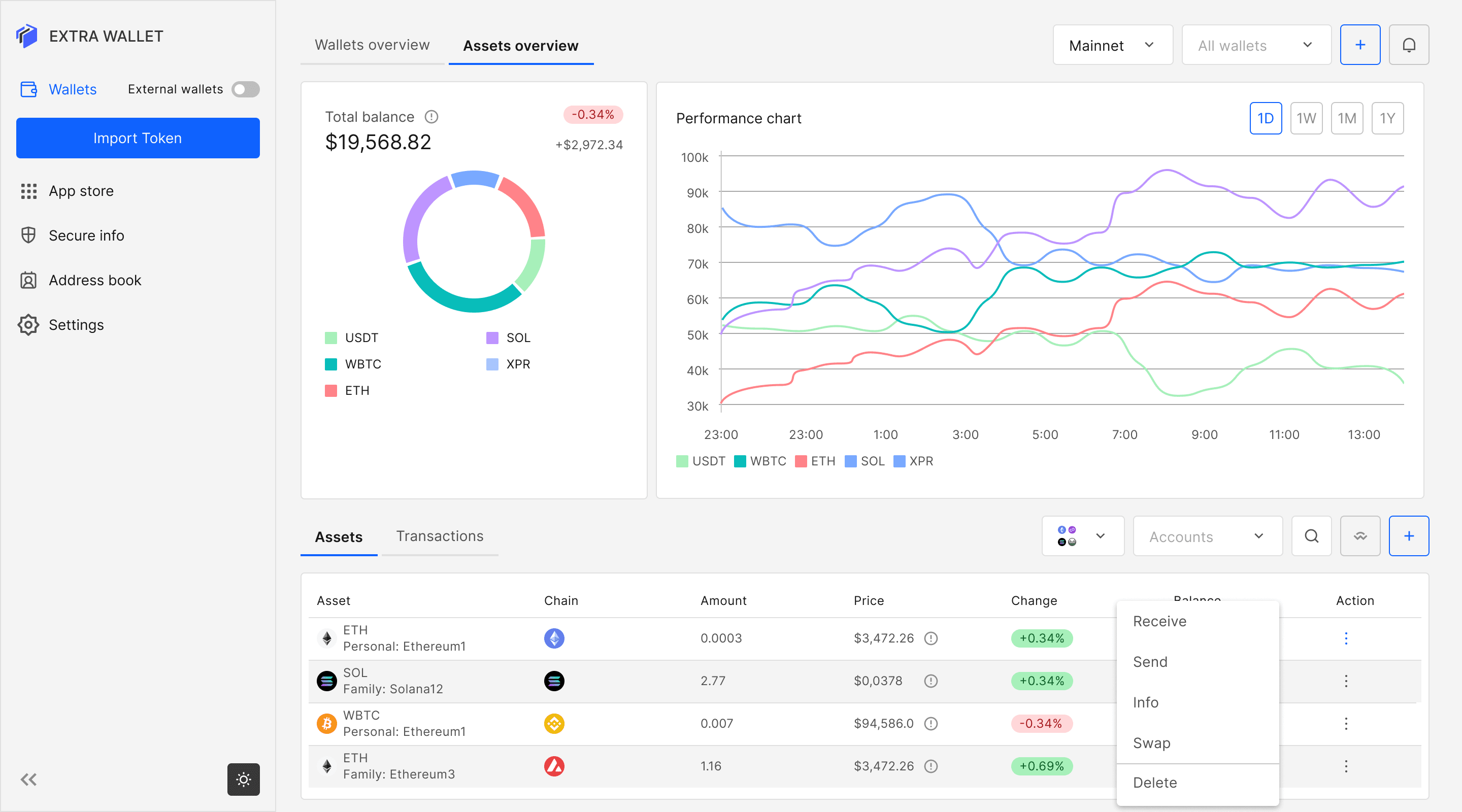 Effortlessly add wallet addresses and monitor them in your portfolio: total balance, assets, and recent transactions — all from your unified dashboard.